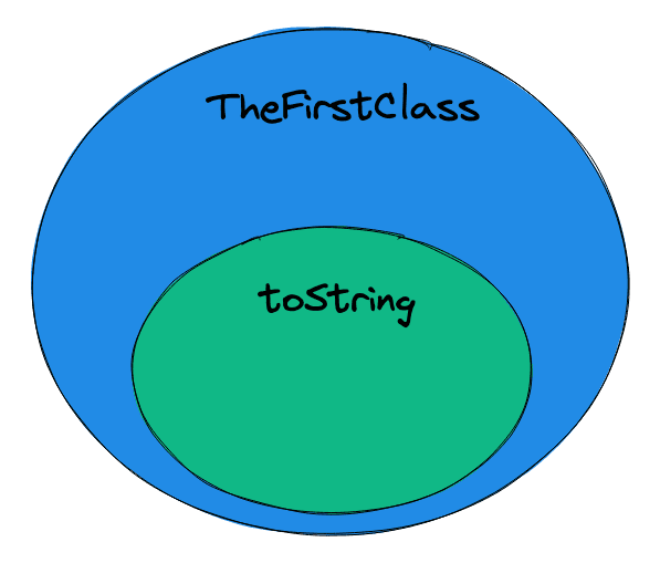 In TheThirdClass, we inherit TheSecondClass, and rewrite the toString function. That means our functionality of toString depends on the upstream class. The inherience may decrease our type declaration code, but we actually bind these classes together. When the system grow up, the inheritance relationship will become super complicated.